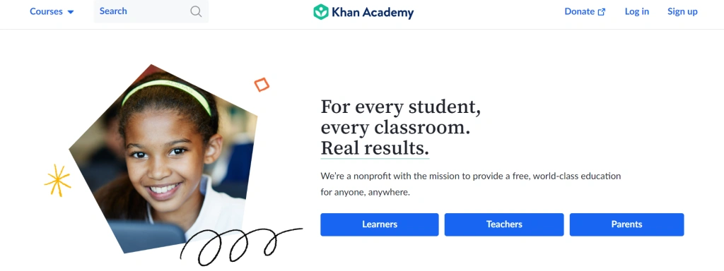 Khan Academy is one of the best free online course websites, as it offers classes on almost all school subjects.