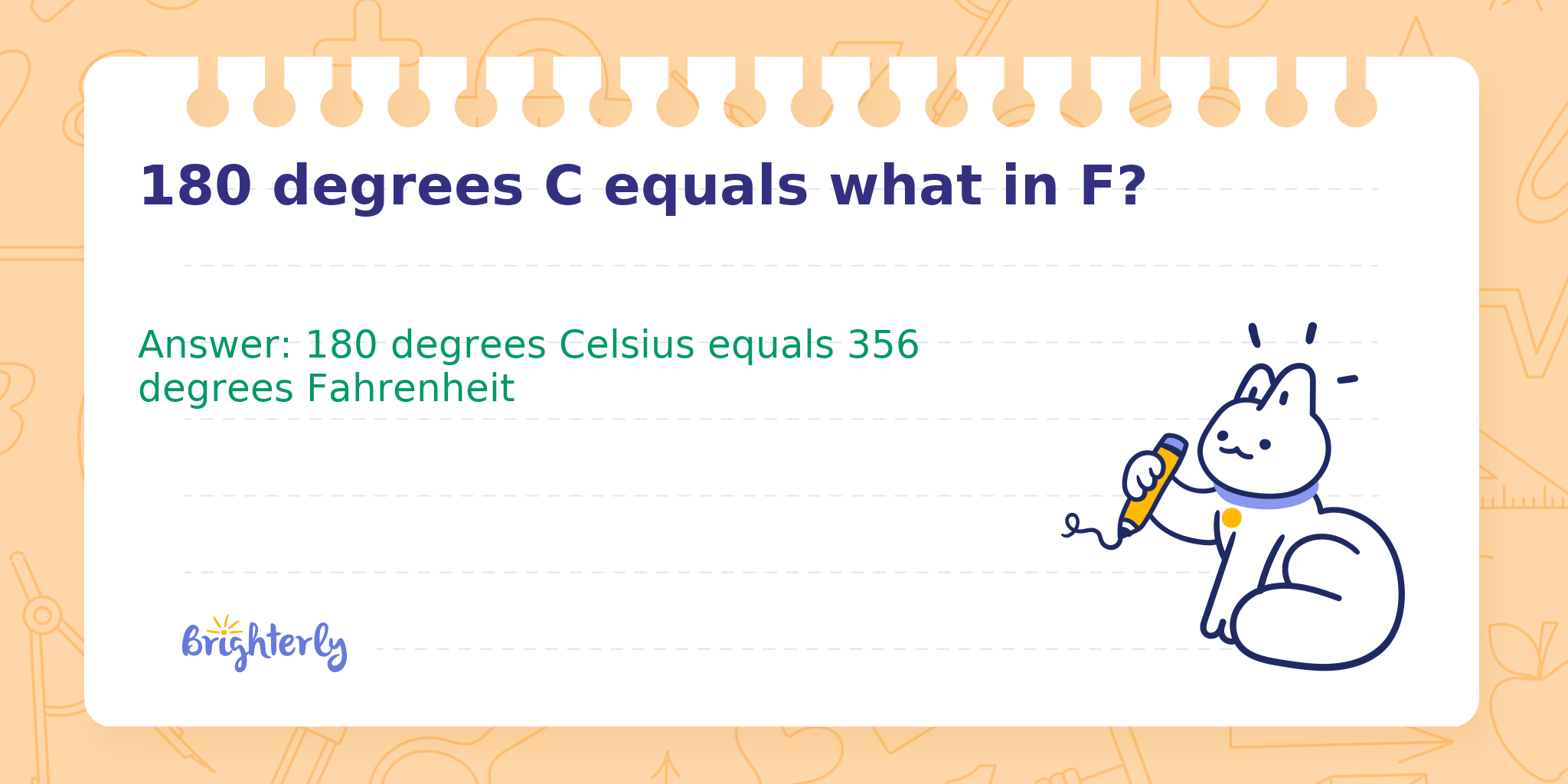 Answer: 180 degrees Celsius equals 356 degrees Fahrenheit