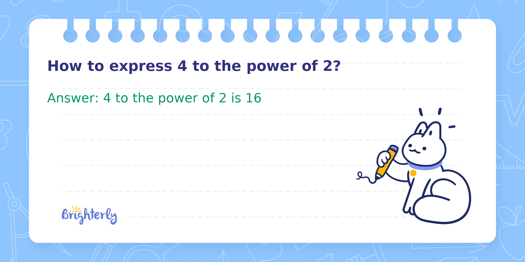 Answer: 4 to the power of 2 is 16