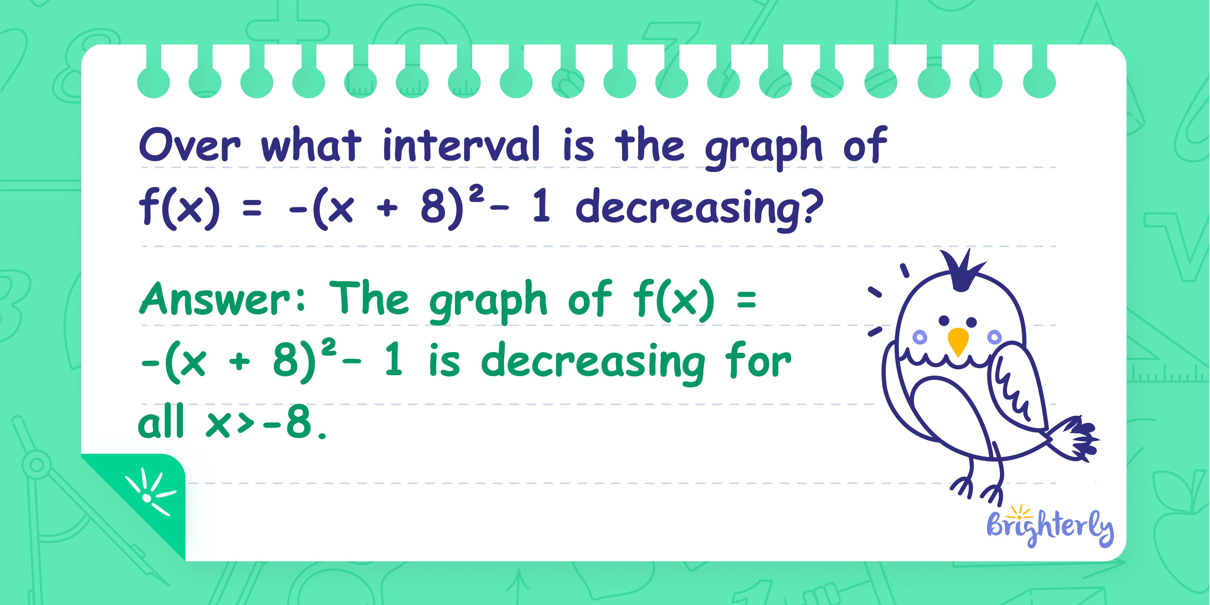 Answer: The graph of f(x) = -(x + 8)² – 1 is decreasing for all x > -8