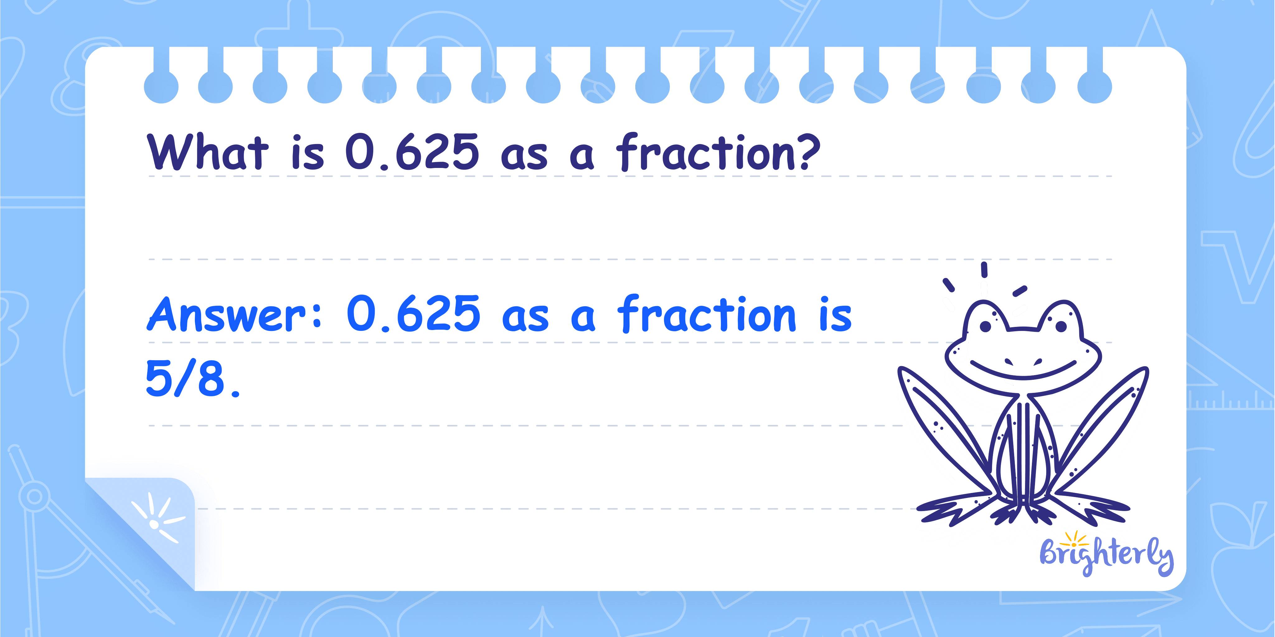 Answer: 0.625 as a fraction is 5/8