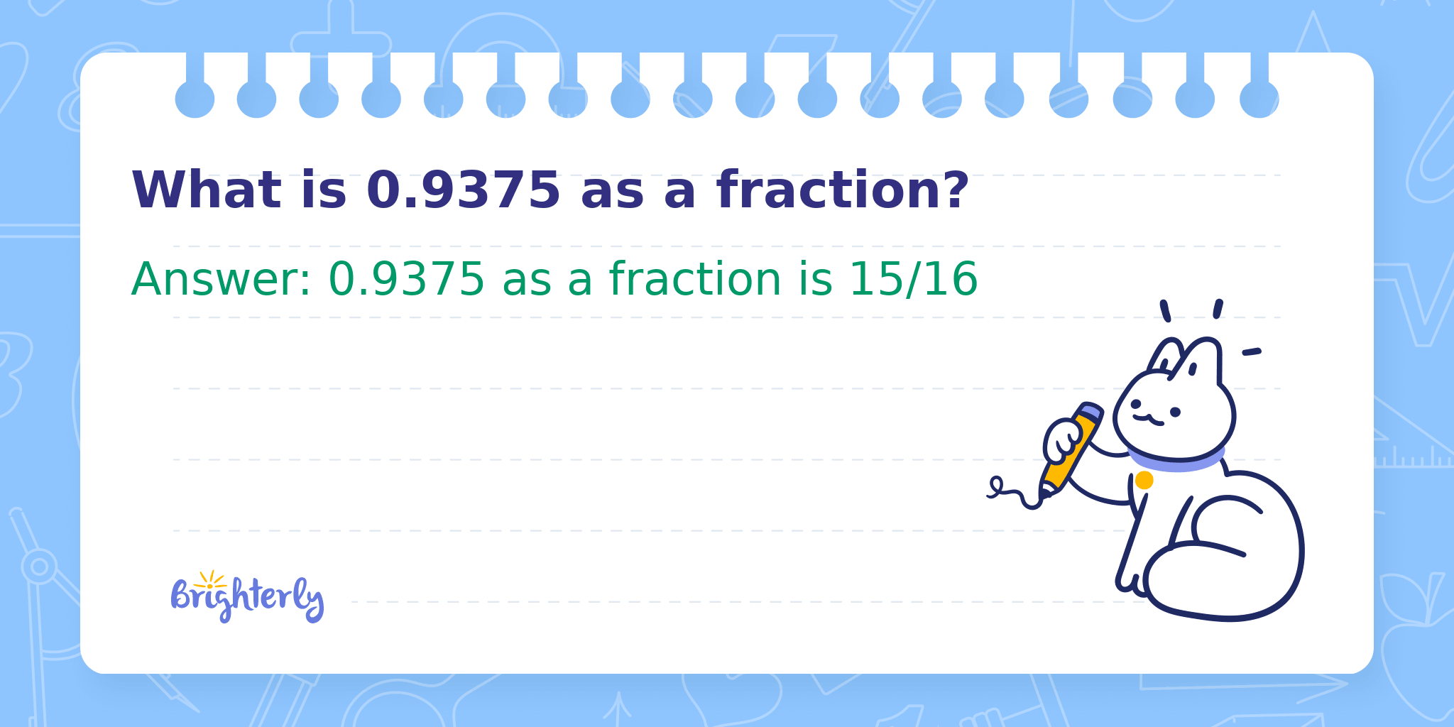Answer: 0.9375 as a fraction is 15/16
