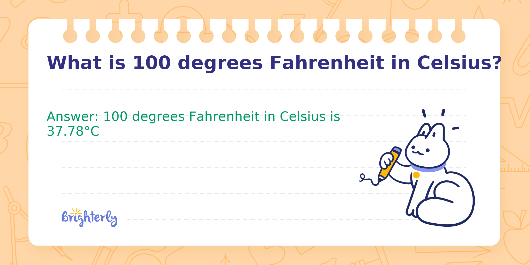 Answer: 100 degrees Fahrenheit in Celsius is 37.78°C