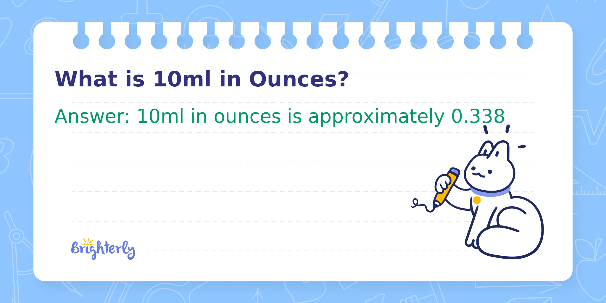 Step 2: Step 2: Multiply 10 ml by 0.033814 to get the value in ounces