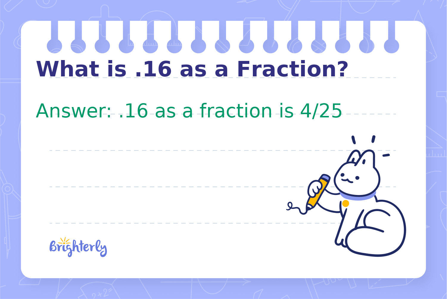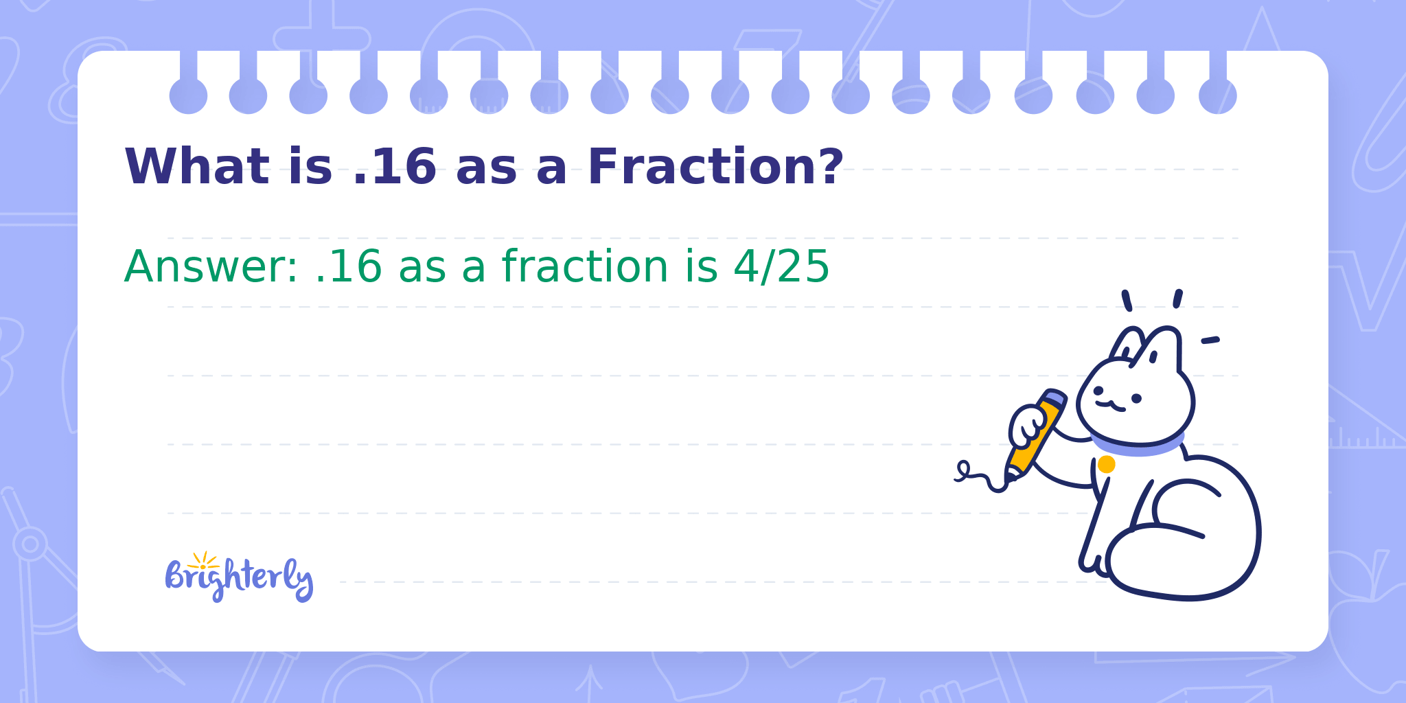 Alternatively, .16 can be written as a fraction by considering proportions.