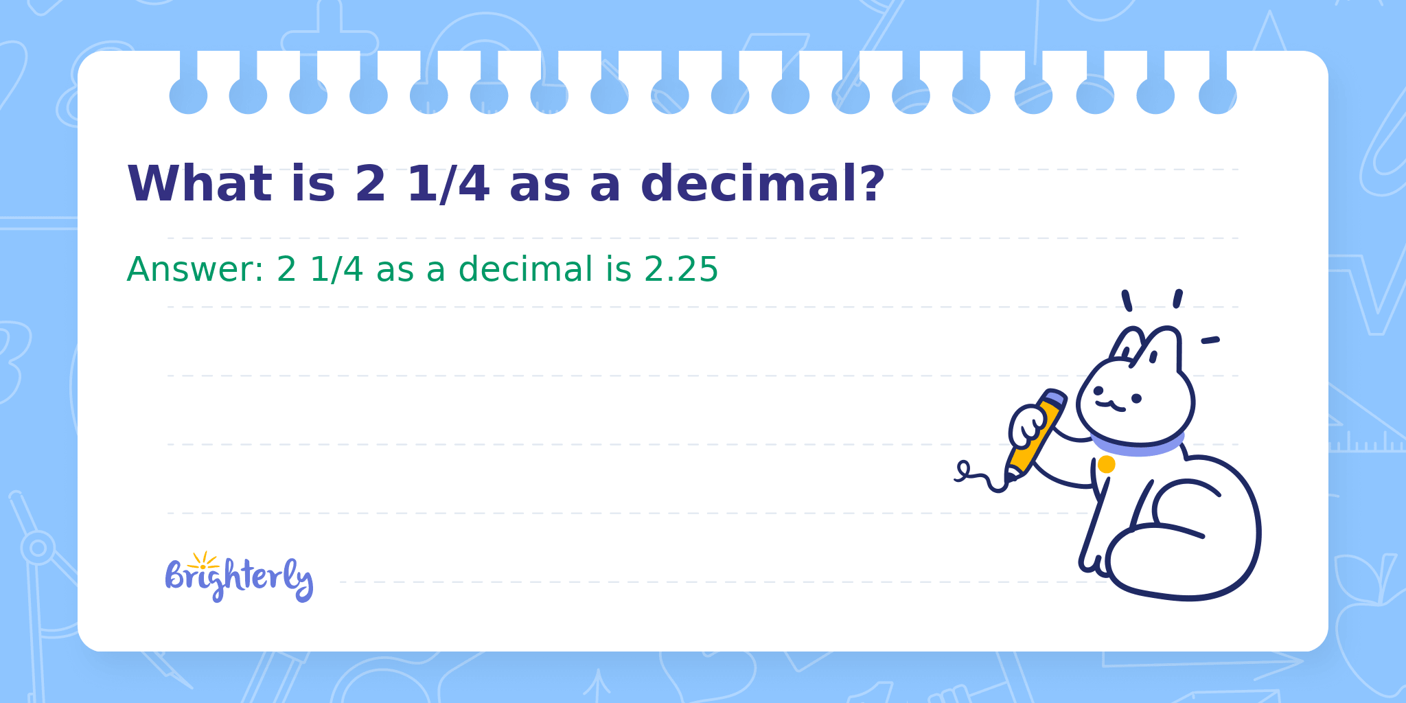 Converting mixed numbers to decimals is a common mathematical process that makes numbers easier to compare and use in calculations. The mixed number 2 1/4 consists of a whole number and a fractional part, and expressing it as a decimal allows for straightforward computations in arithmetic problems.