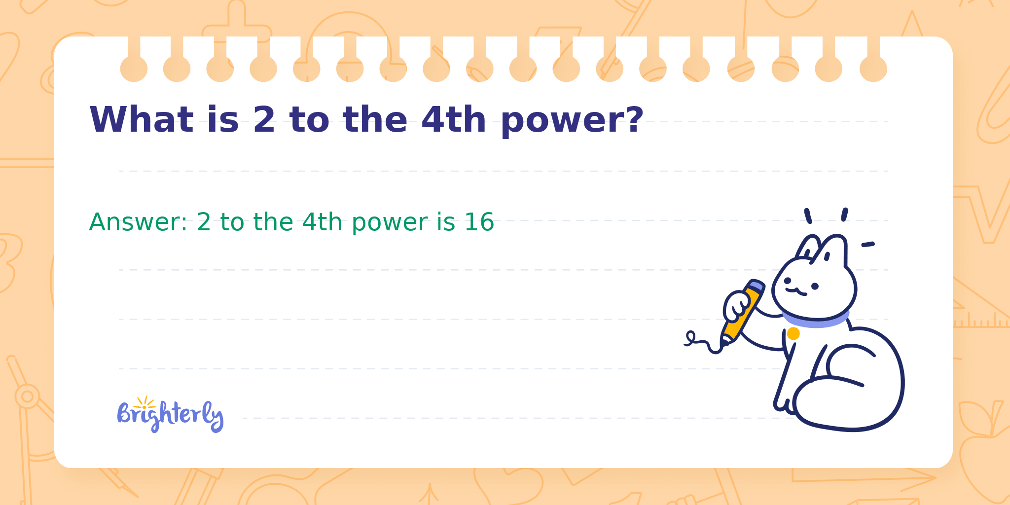 Answer: 2 to the 4th power is 16