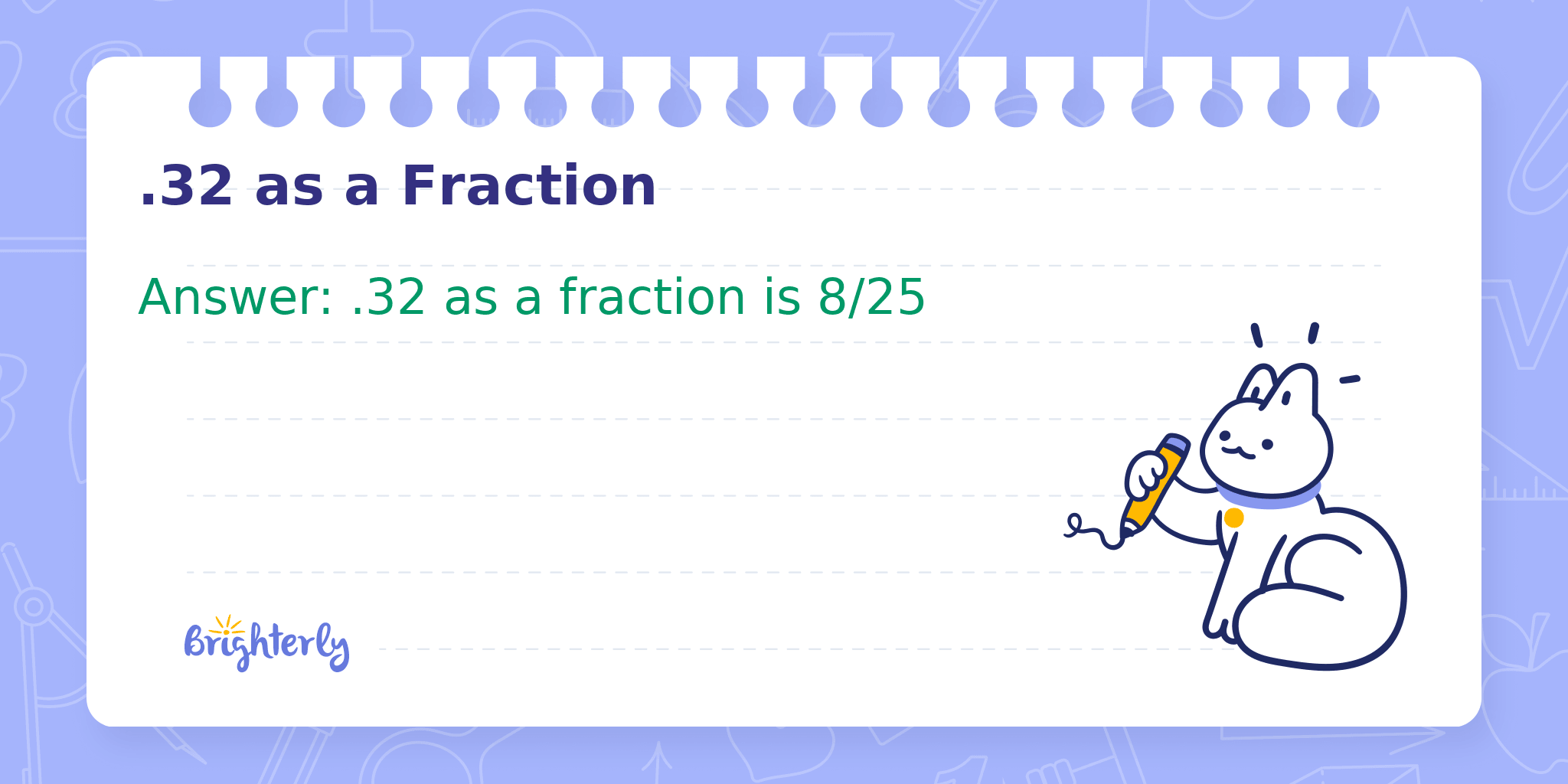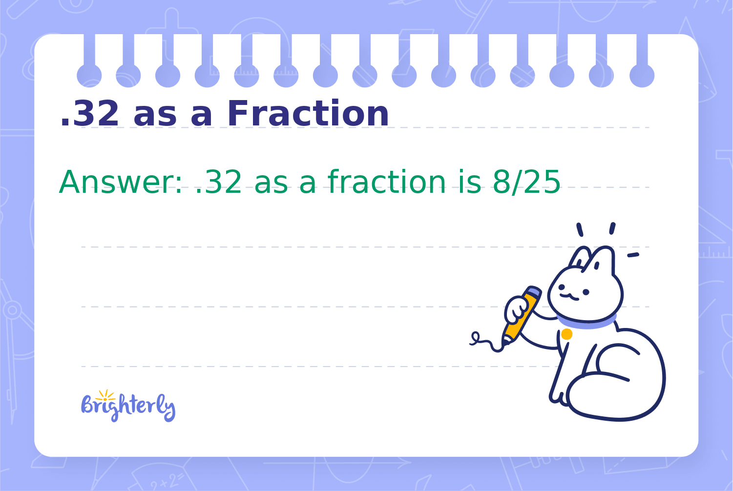 By viewing .32 as 32 divided by 100, we can represent this as a fraction and reduce if possible.