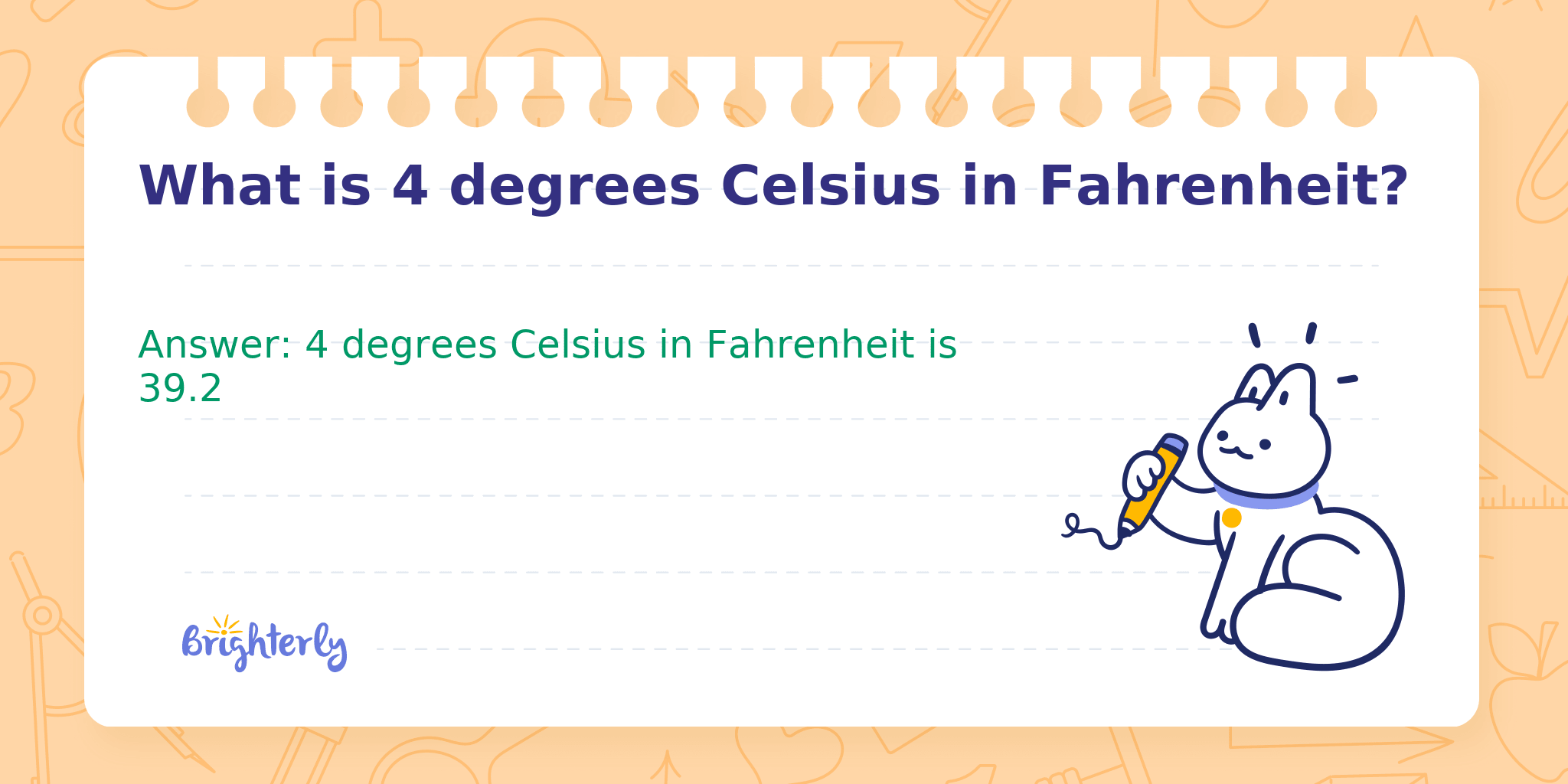 Answer: 4 degrees Celsius in Fahrenheit is 39.2