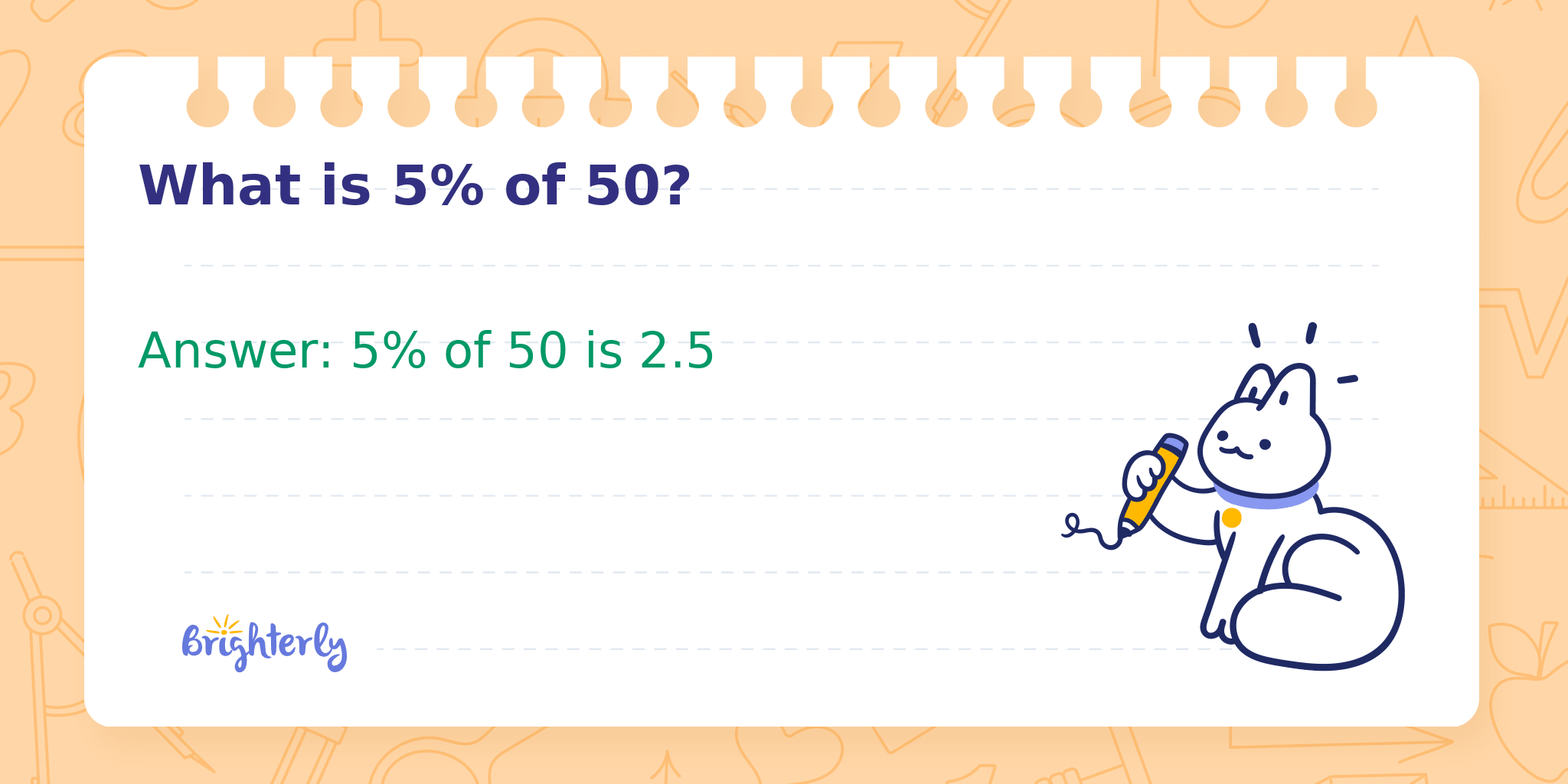 Finding a percentage of a number is a fundamental arithmetic skill. In this case, we are asked to determine what 5 percent of 50 is. This concept is useful in many real-life scenarios, such as computing discounts, tax, or small portions of values. Let's explore how to calculate this step by step.