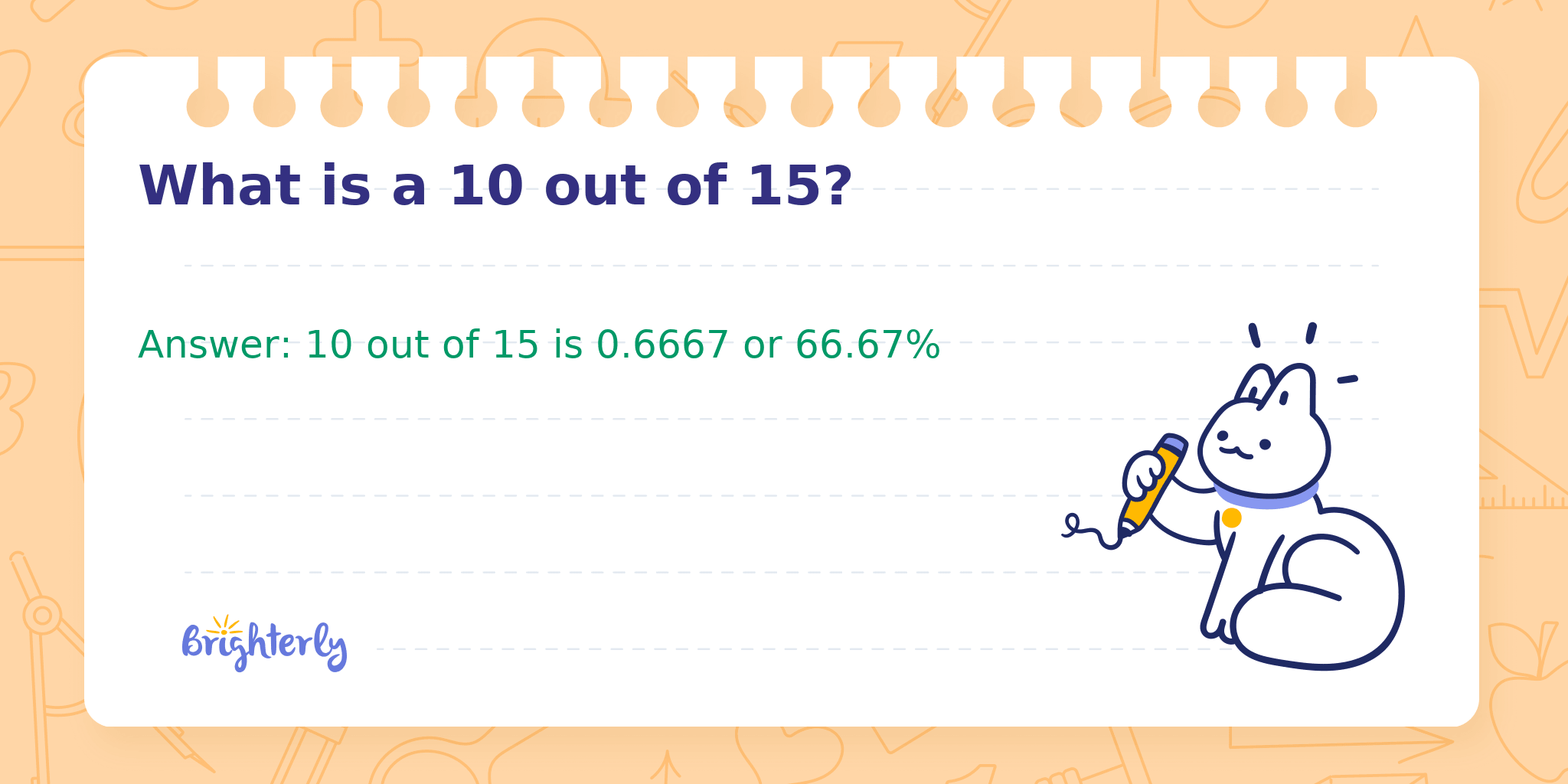 The question 'What is a 10 out of 15?' typically asks you to express the fraction 10/15 in other forms, such as a decimal or a percentage. Converting fractions to decimals and percentages is a fundamental math skill that helps you compare values and understand results in different formats.