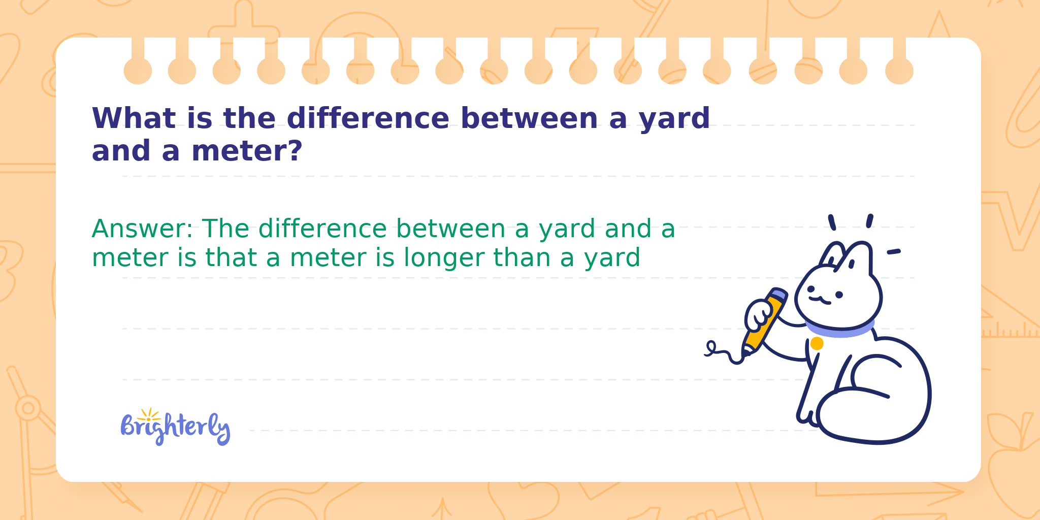 Answer: The difference between a yard and a meter is that a meter is longer than a yard