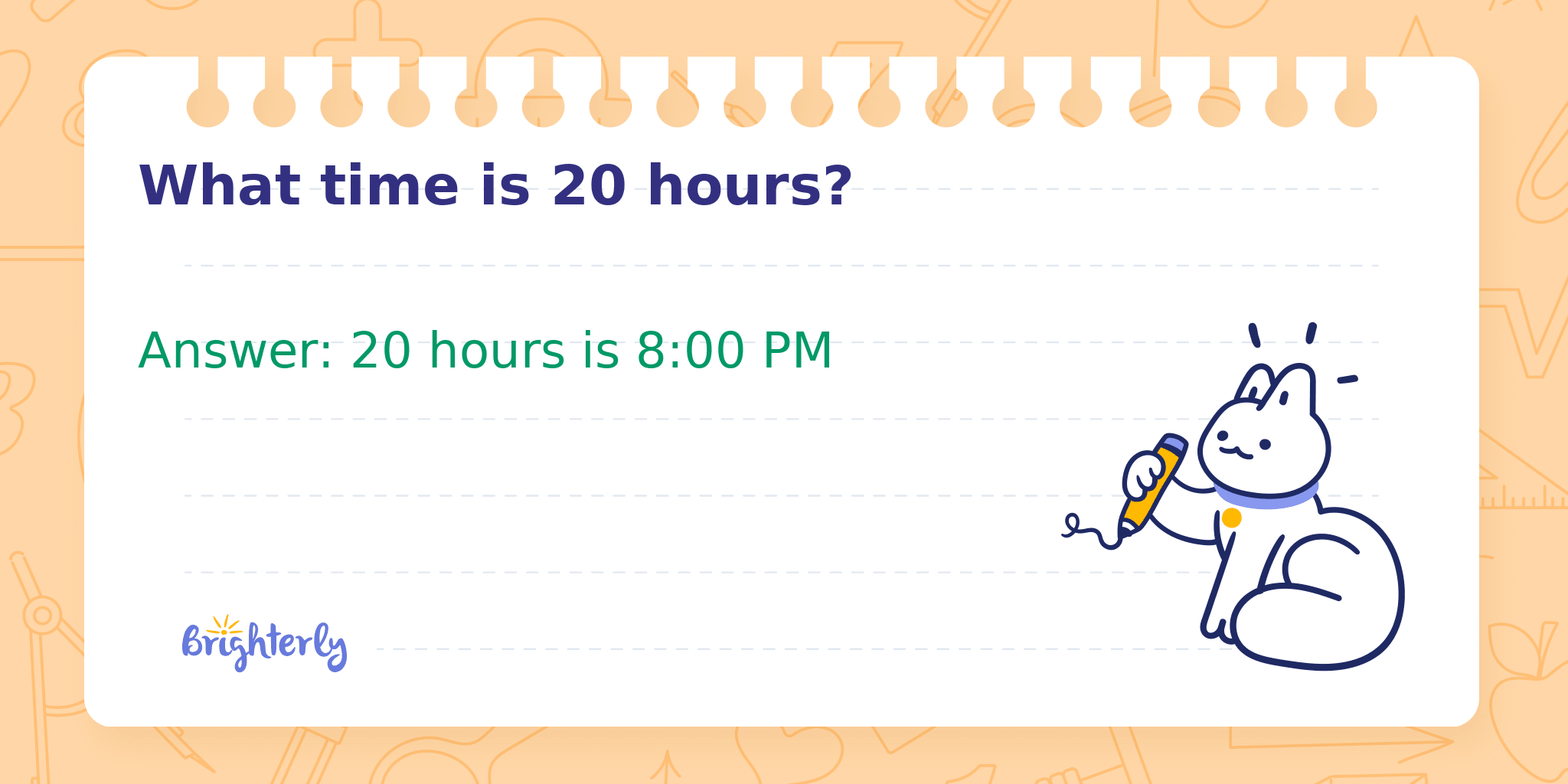 Convert 20 hours to 12-hour time by referring to common conversions between 24-hour and 12-hour clocks.