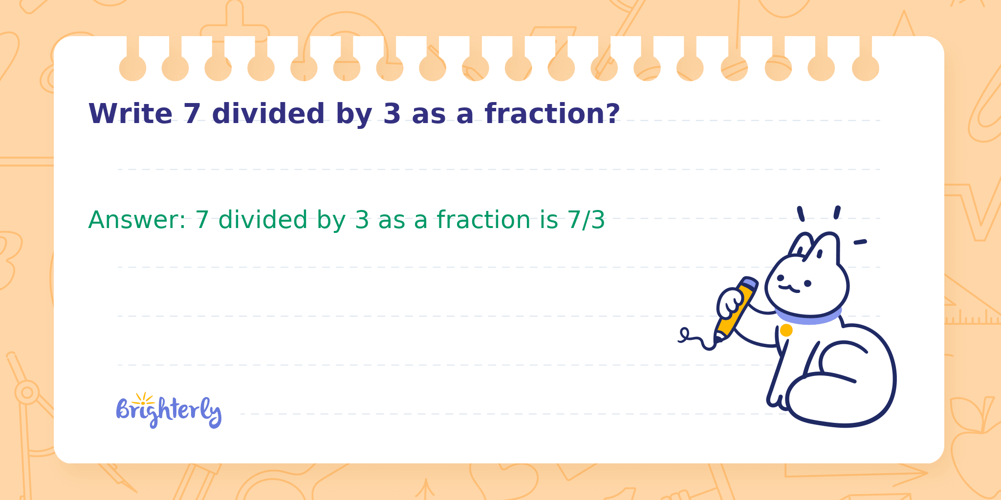 When you divide one number by another, you can represent the division as a fraction. In mathematics, fractions are a way to express ratios, division, and parts of a whole. Expressing '7 divided by 3' as a fraction helps visualize the relationship between these two numbers.